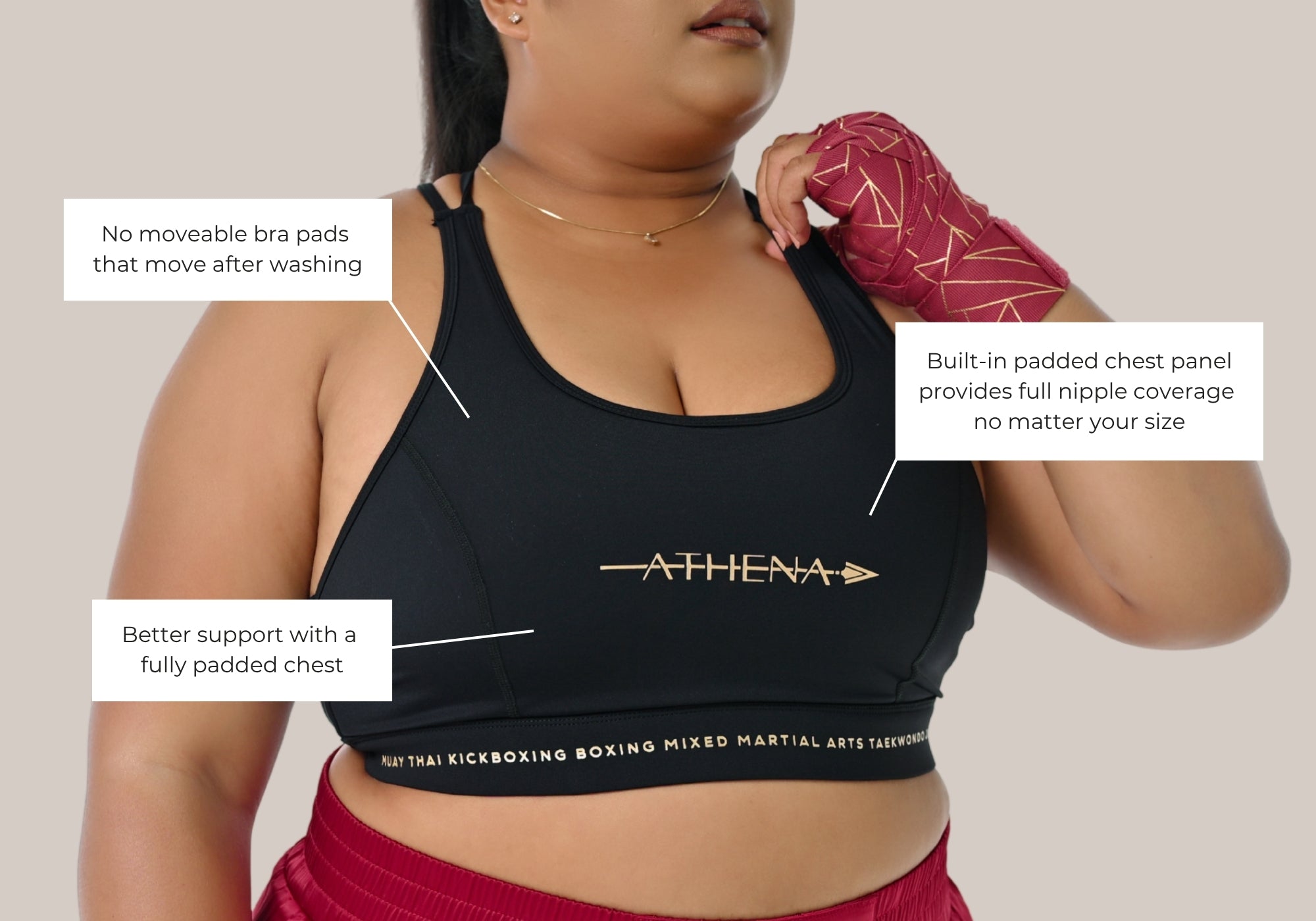 We updated our Thessalia Sports Bra to bring you V2.1 now with a fully padded chest to help: